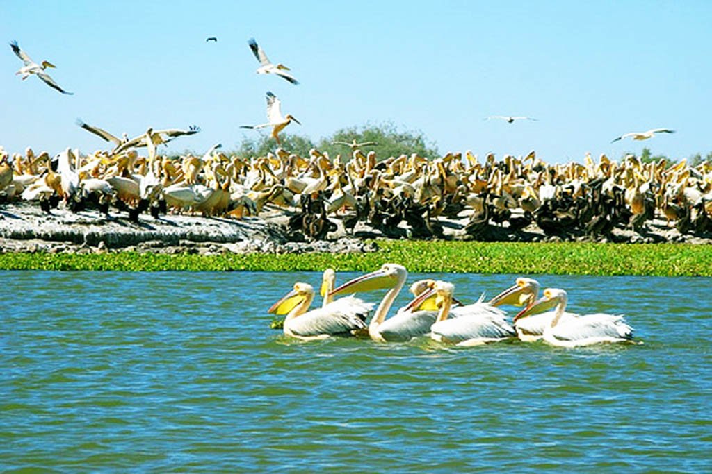 Petit déjeuner. Départ pour le Parc National des Oiseaux du Djoudj. Créé en 1971 et troisième parc ornithologique du monde, le parc du DJOUDJ s’étend sur 12 000 hectares dans le delta du fleuve Sénégal. Placée dans une région désertique, la cuvette du Djoudj est la seule tâche verte de cette partie du Sahel. Aussi exerce-t-elle un attrait irrésistible sur l’avifaune d’Europe comme d’Afrique. De Novembre à Mars, trois millions d’oiseaux s’y donnent rendez-vous pour hiverner. Ajoutez-y une vingtaine d’espèces de mammifères. Excursion en pirogue : Moteur au ralenti, la pirogue s’enfonce au cœur du Djoudj tandis que se déclenche un fantastique ballet : Flamants qui décollent en rangs serrés, pélicans qui s’envolent, cormorans qui plongent. Retour à SAINT LOUIS et déjeuner. L’après-midi, départ pour la visite de la ville en calèche : Le fameux pont Faidherbe (500 m de long) datant en 1897 fait la fierté des saints louisiens. Le village des pêcheurs intéressant le matin et le soir quand on voit les énormes barques franchir la barre. Le cimetière musulman dans le quartier de Guet Ndar. Les tombes sont des piquets recouverts de filets de pêche. Le marché Sor (avant de prendre le pont) nombreux étals d’écorces de tous genres, chacune ayant propriété de guérir une ou plusieurs maladies. La gare de style « Nouvelle-Orléans ».
