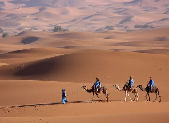 Petit déjeuner. Départ pour LOMPOUL, seul désert de sable orange du Sénégal. Arrivée à LOMPOUL et installation à votre Bivouac pour profiter d’une expérience unique en plein désert Déjeuner. En début d’après-midi, ballade à dos de dromadaires dans le désert. Initiation au thé à la menthe et au Djembé.