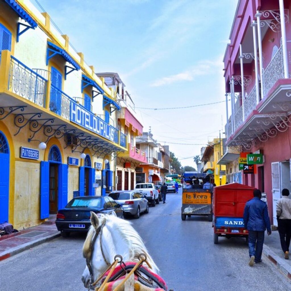 Départ après le petit-déjeuner à destination de Saint Louis. En cours de route, visite de villages wolofs. Arrivée et déjeuner à Saint Louis. Après midi libre au bord de la piscine.